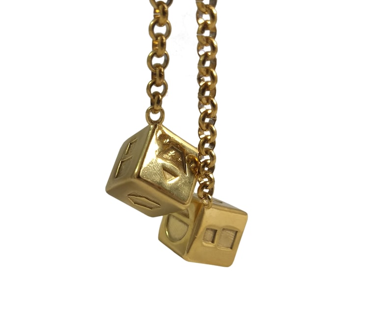 Stainless Steel Smuggler's Golden Dice - Scoundrel Gambler Rogue - Gold Plated Stainless Steel Dice - Mirror charm for your cockpit